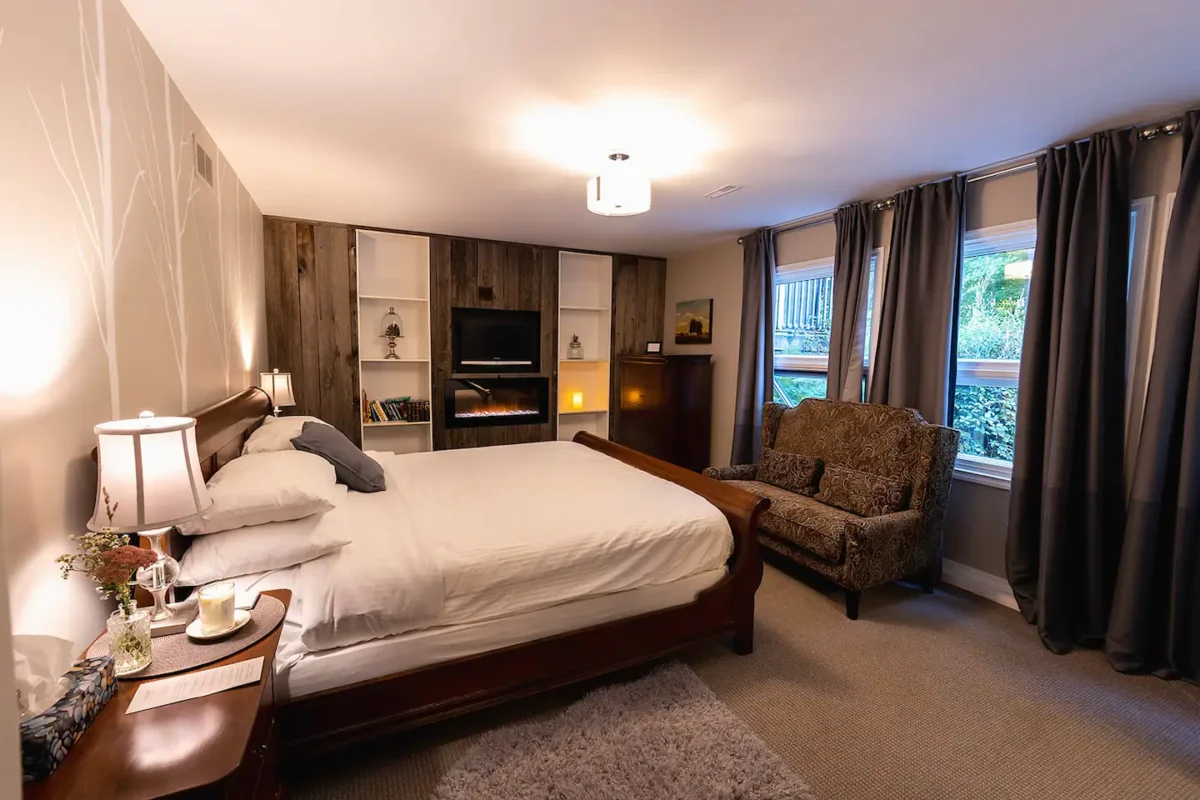 The King Suite at Sequel Inn offers Scandinavian-inspired elegance and comfort. Located on the bottom floor, it features large windows and a glass door, flooding …